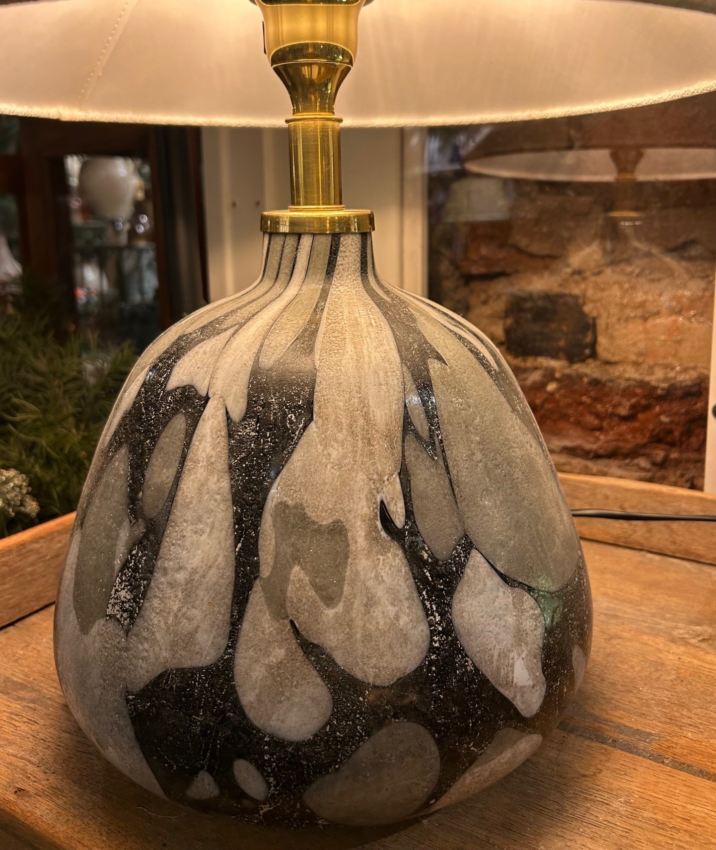 Handgjord lampfot i glas. Variationer i mönster och finish gör varje exemplar unikt.