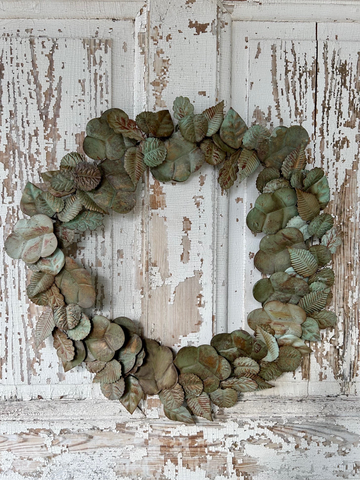 Denna krans är tillverkad av slitstarkt järn och handmålad, och är utformad för långvarig användning som en del av säsongsbetonad eller året runt-inredning.