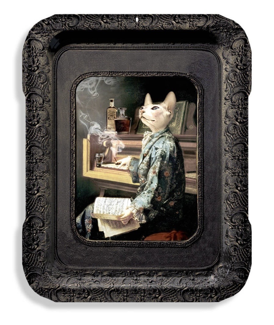 Ellipsformad serveringsbricka med en fängslande illustration som fångar ögat och väcker nyfikenhet. Lazy Victoire berättar sin egen unika historia. Lazy Victoire, den kultiverade ättlingen till en aristokratisk släkt, uppfyller helt och hållet sin rangs krav men avslöjar ett högljutt nattligt temperament på kvällen.