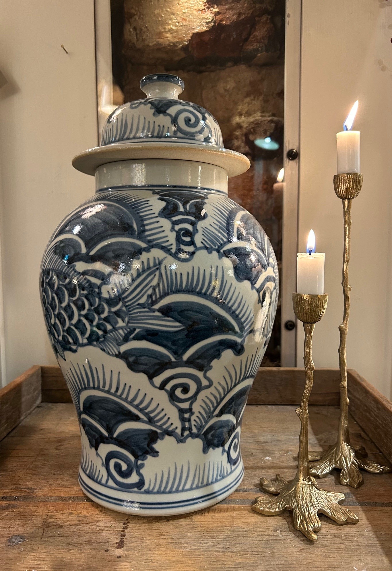 Stort krus med klassikt handmålat motiv. Vacker inredningsdetalj som den är, men även fin som vas (använd gärna en avklippt stor PET-flaska för att ha vatten i).