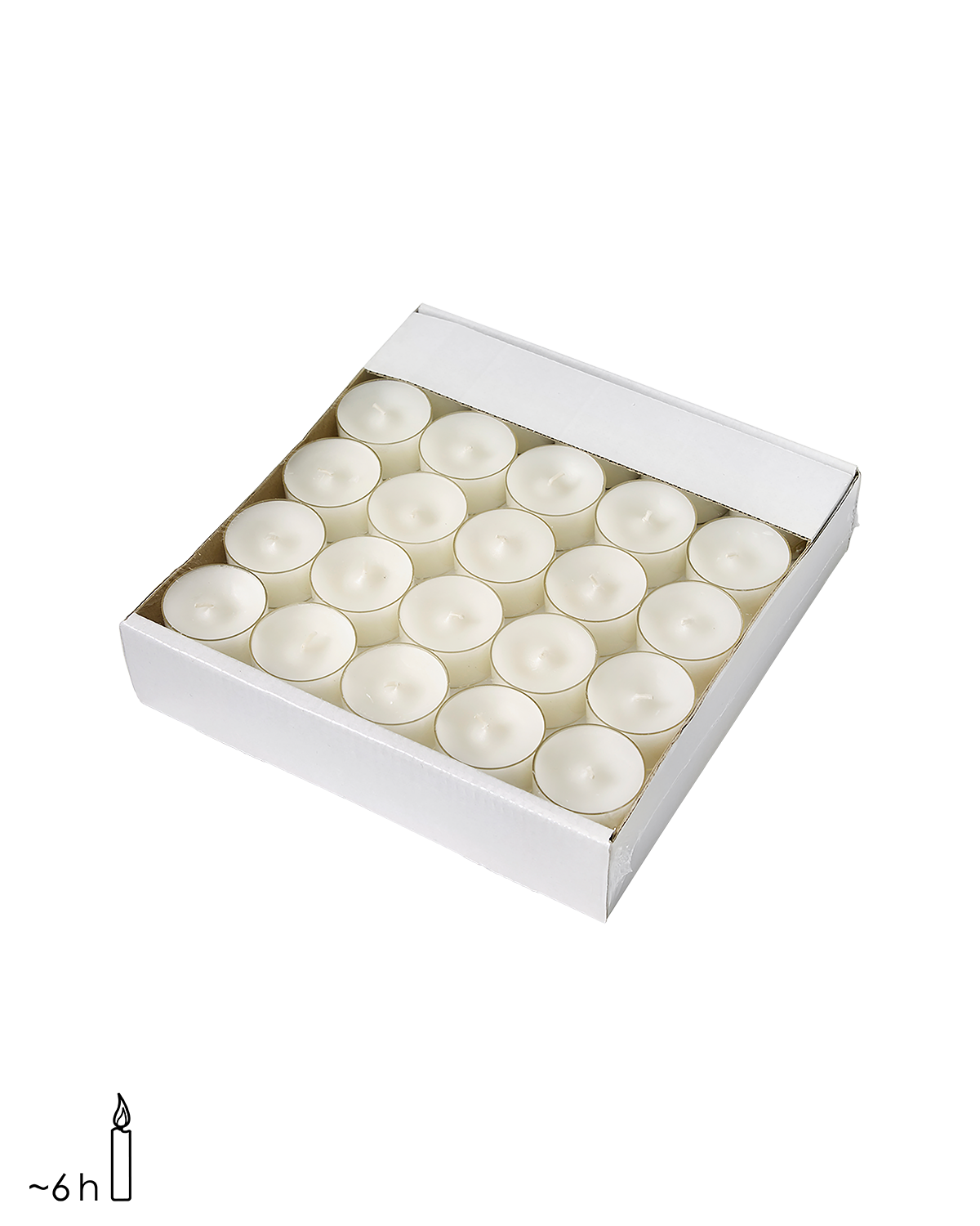Värmeljus i plastkopp, vilket ger ett extra fint ljusflöde i ljuslyktor. Brinntiden är 6 timmar.