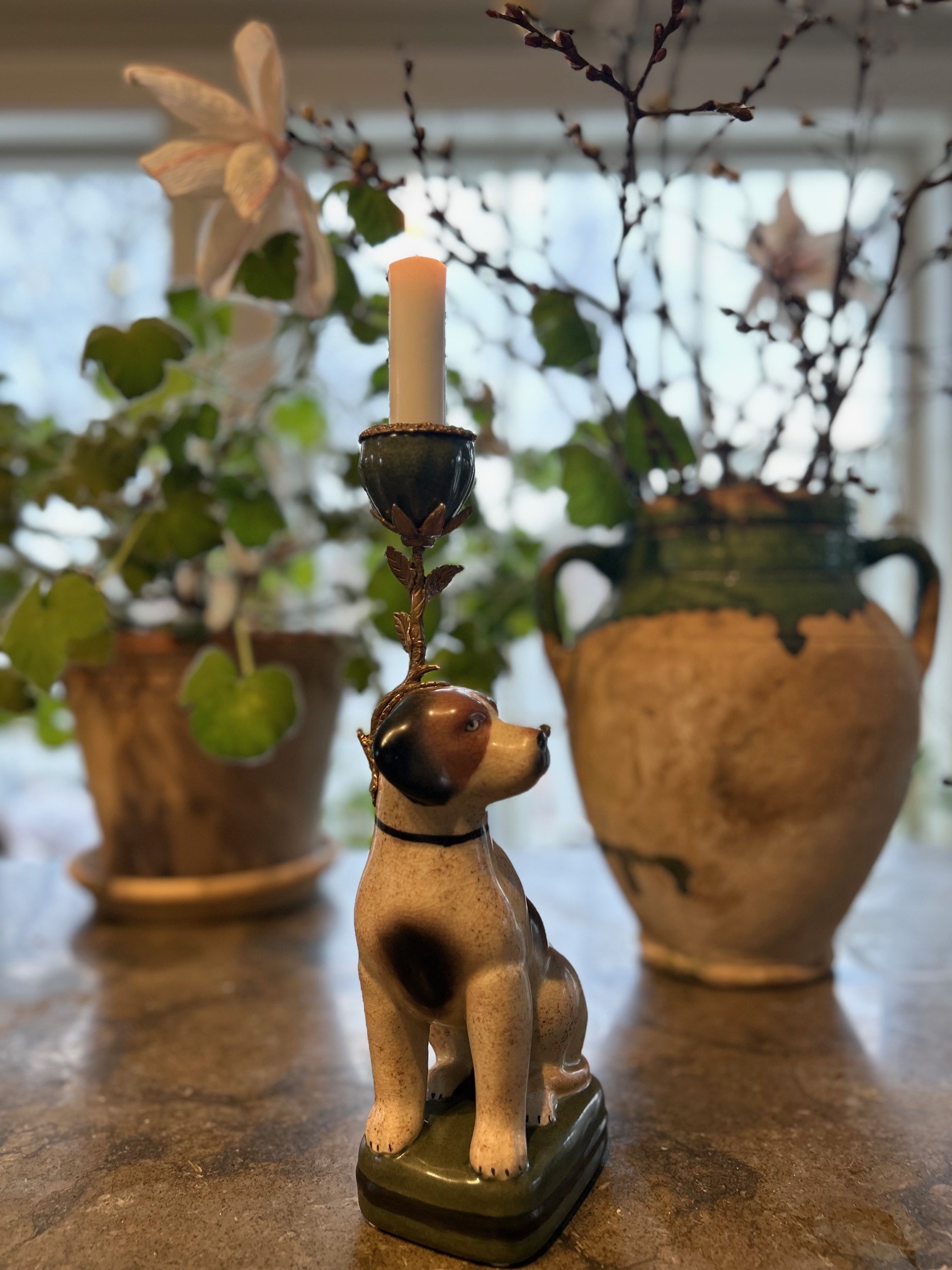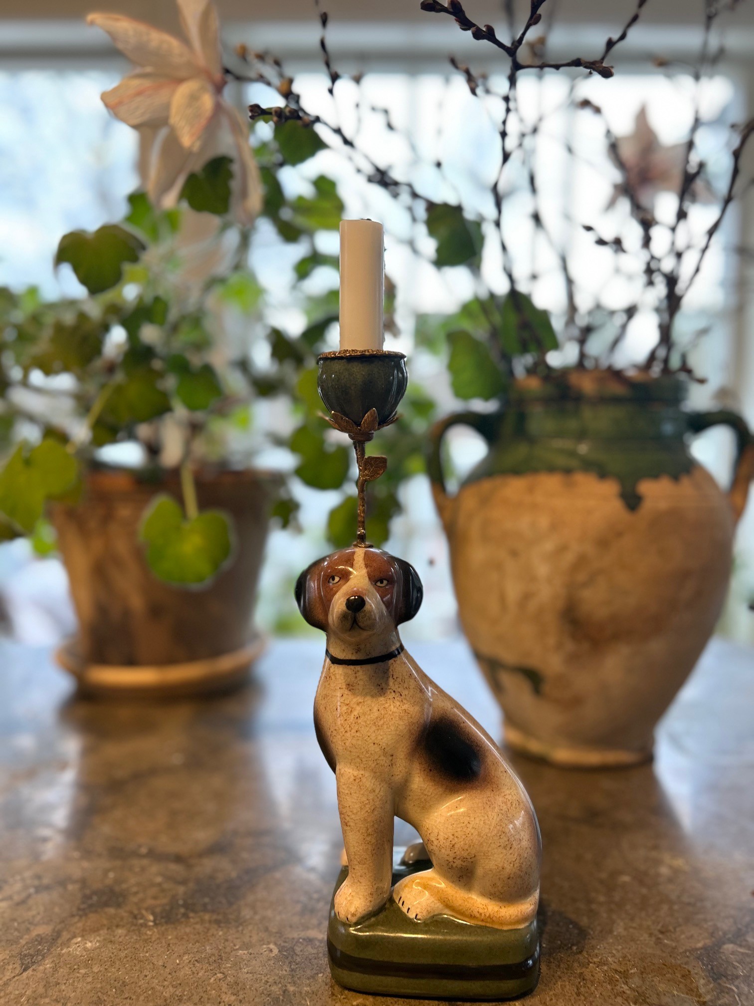 Handmålad ljusstake i porslin med mässingdetaljer, Beagle ljusstaken gör ditt hem lite personligare. Kärlek vid första ögonkastet kan man säga när vi såg den här ljusstaken.