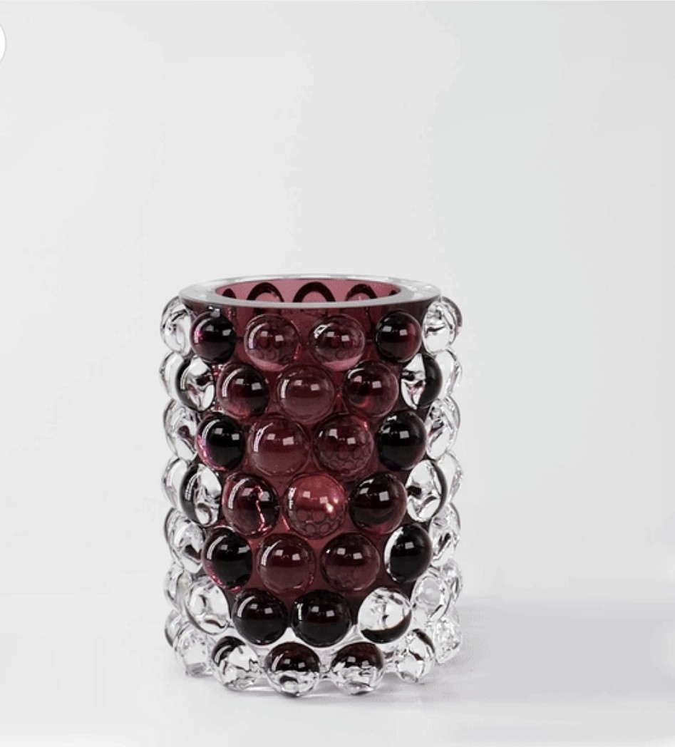 Bubblorna, skapade i en gjutjärnsform, ger varje Hurricane Boule sitt eget unika optiska mönster och skapar ett vackert skimrande ljus. Den kan också användas som en vacker vas för blommor.