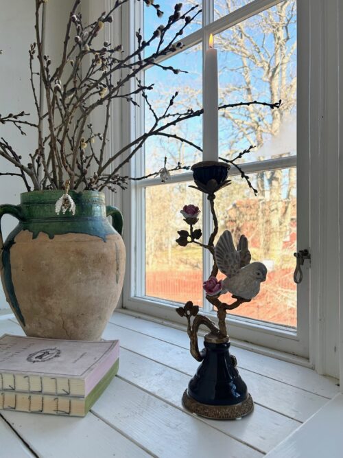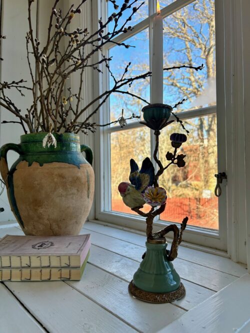 Ljusstake i genomfärgat glas i milda pastelliga färger, jättefin att blanda med de andra modellerna i serien, men förstås vacker helt ensam också. Vanliga kronljus passar till ljusstaken.