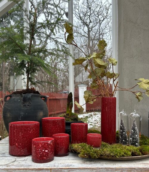 Vacker ljuslykta i munblåst tjockt genomfärgat glas. Eftersom glaslyktan är ett unikt hantverk blir ingen lik den andra. Handgjord glaslykta av returglas som skiftar i struktur och glaset du beställer kan därför avvika något från bilden. Lyktorna finns i flera olika färger och storlekar, superfint att blanda dem tillsammans.