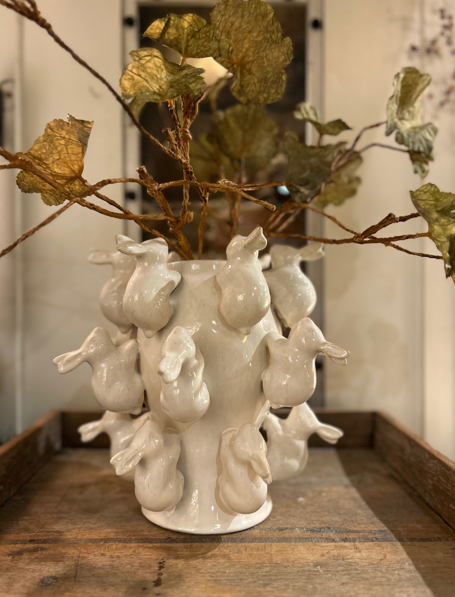 Hur fantastisk är inte Bunny vas med små klättrade kaniner. Vasen är en dekoration i sig och behöver inte speciellt mycket blommor/kvistar för att pryda ditt hem.