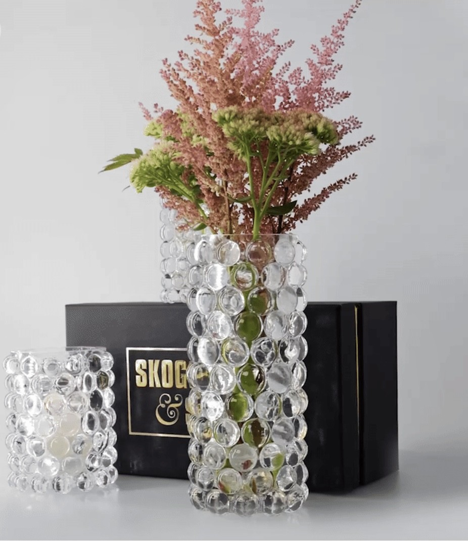 Handblåst i landskapet Böhmen, där världens bästa glasblåsare finns. Bubblorna, skapade i en gjutjärnsform, ger Boule sitt unika optiska mönster och en lyxig tung känsla. Perfekt för blommor, men lika slående tom som ett dekorativt föremål.