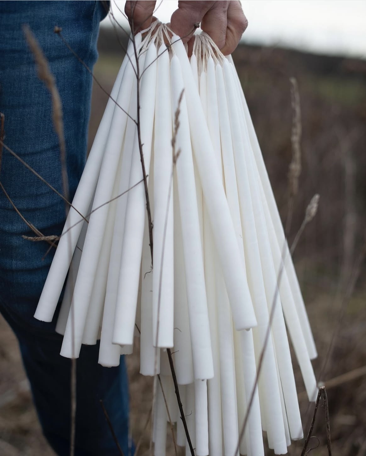 Stöpta ljus tillverkas genom att veken doppas i den varma ljusmassan tills vi når den tjocklek som önskas. Det tillverkningssättet skapar en fantastiskt fin struktur på ljusen.