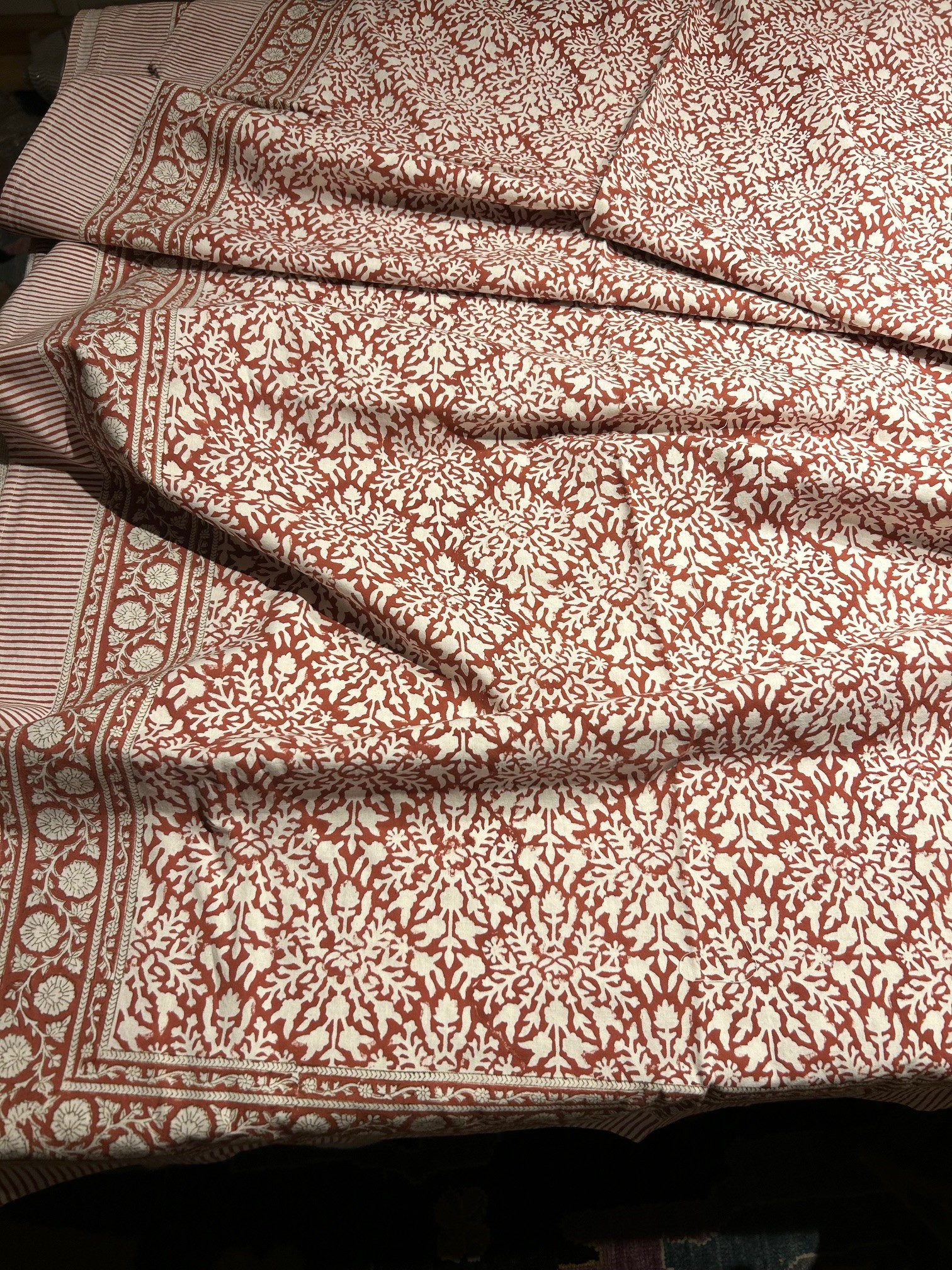 Vacker bomullsduk från Chamois i mönstret Snowflake i rött, en duk som med fördel kan användas mer än till jul, vi skulle säga att det här är en vintrig duk som därmed får en längre livslängd.