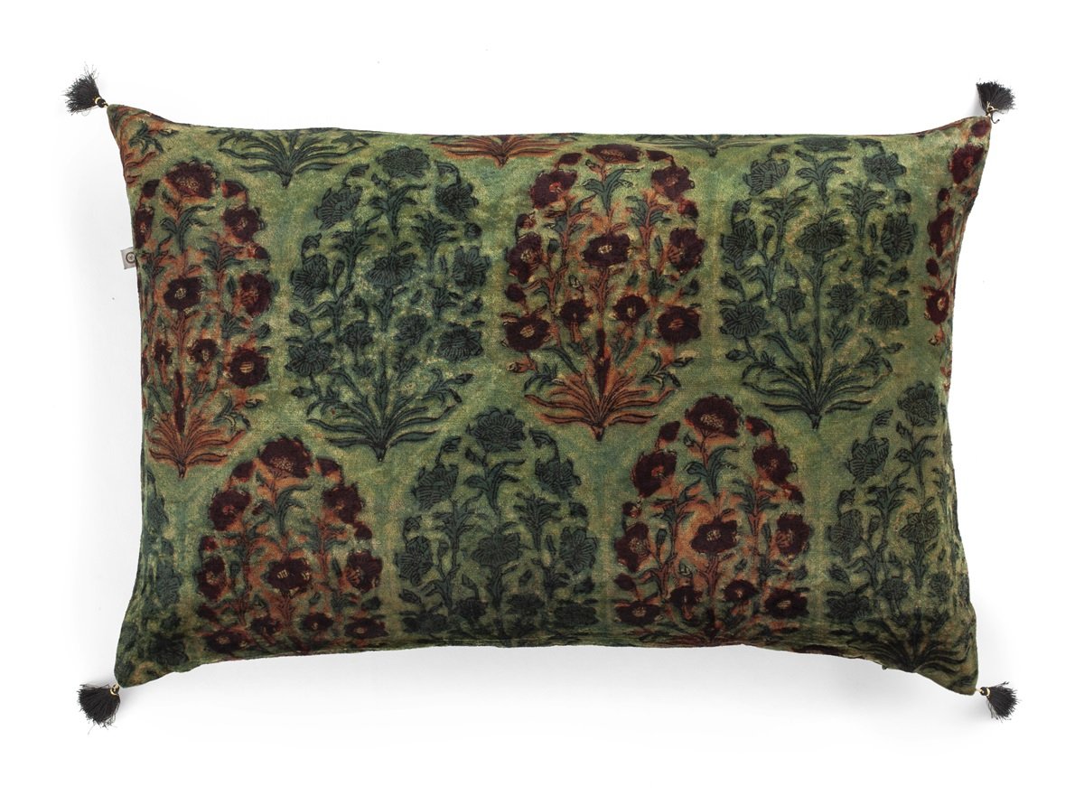 Vackert kuddfodral i silk/velvet med små söta eleganta tofsar i varje kuddhörn.
